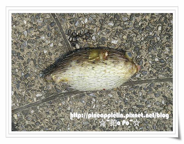 ↑ 被丟在岸邊做日光浴的河豚,遠遠看還以為是椰子殼咧~XD